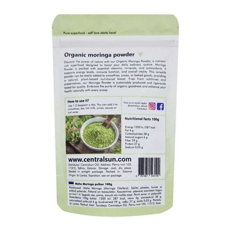 Luomu moringajauhe on täydellinen kumppani terveelliseen elämäntapaan, tuoden tasapainoa, energiaa ja voimaa suoraan luonnosta!