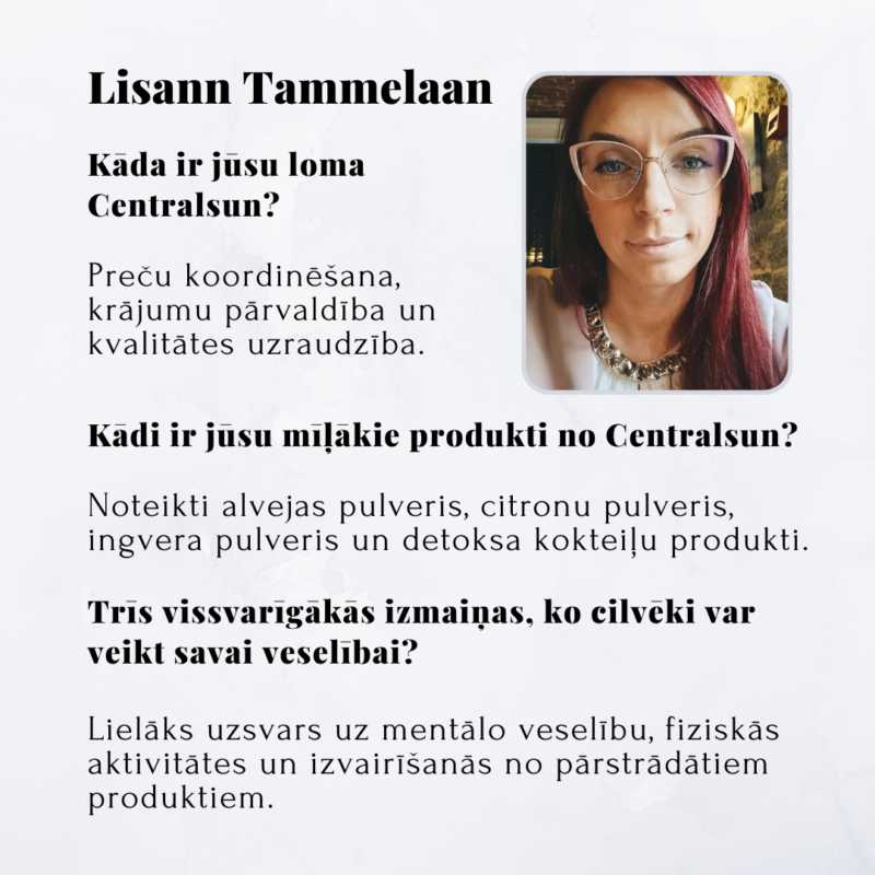 Centralsun tika dibināts Igaunijā 2020. gadā, kad laulātais pāris Tarmo un Maria nolēma izveidot savu zīmolu, kas piedāvā veselības produktus, kurus viņi paši lieto un mīl. Pēc daudzu gadu veselīga dzīvesveida viņi vēlējās iedvesmot citus pieņemt apzinātākus lēmumus. Viss sākās ar vienu produktu – liofilizētu pūķa augļu pulveri. Drīz vien produktu klāstam tika pievienoti citi aizraujoši un augstas kvalitātes produkti, kas ātri iekaroja cilvēku sirdis Igaunijā. Šodien Centralsun ir klienti visā pasaulē, un interese par veselīgiem produktiem turpina pieaugt. 2021. gadā uzņēmumam pievienojās arī Tarmo meita Lisann.