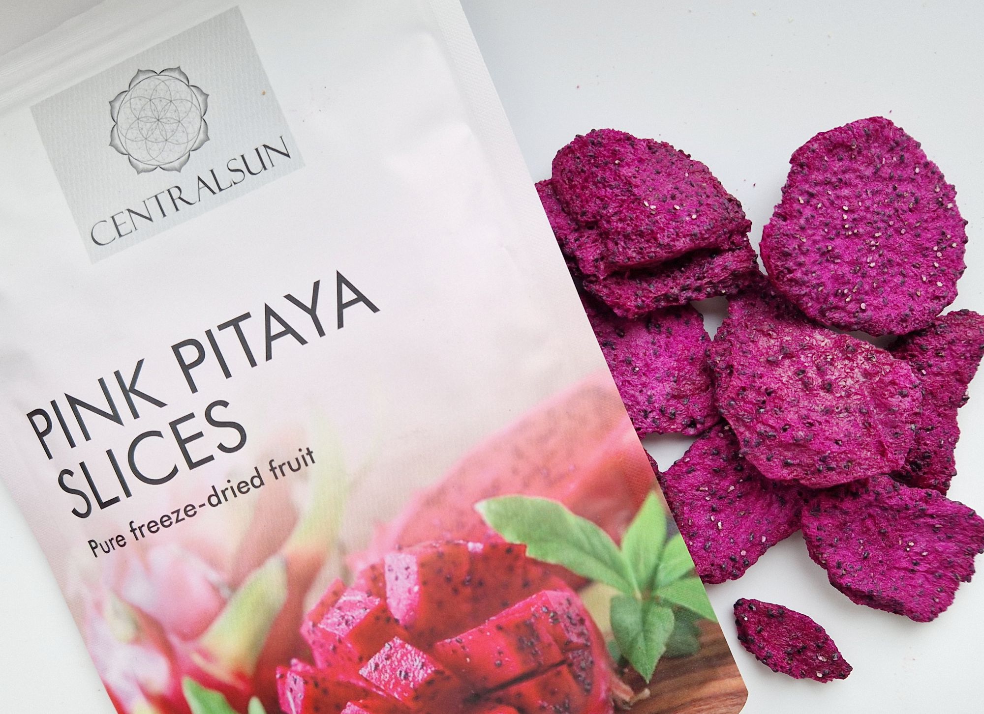 Centralsun Freeze-dried Pink Pitaya Slices are 100% pure and vegan. Free of additives, gluten, GMOs.