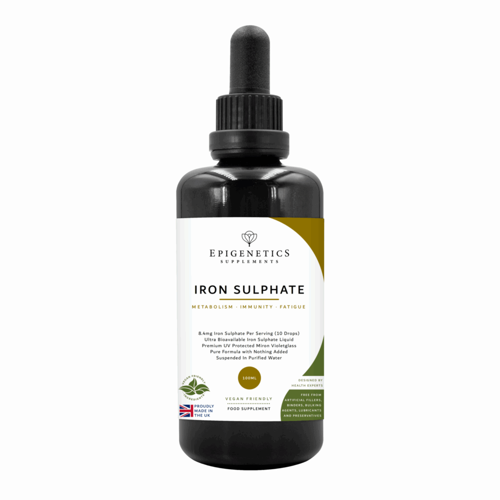 Iron sulphate – a food supplement to help with iron deficiency anaemia and to prevent iron deficiency. Epigenetics liquid iron sulphate is: