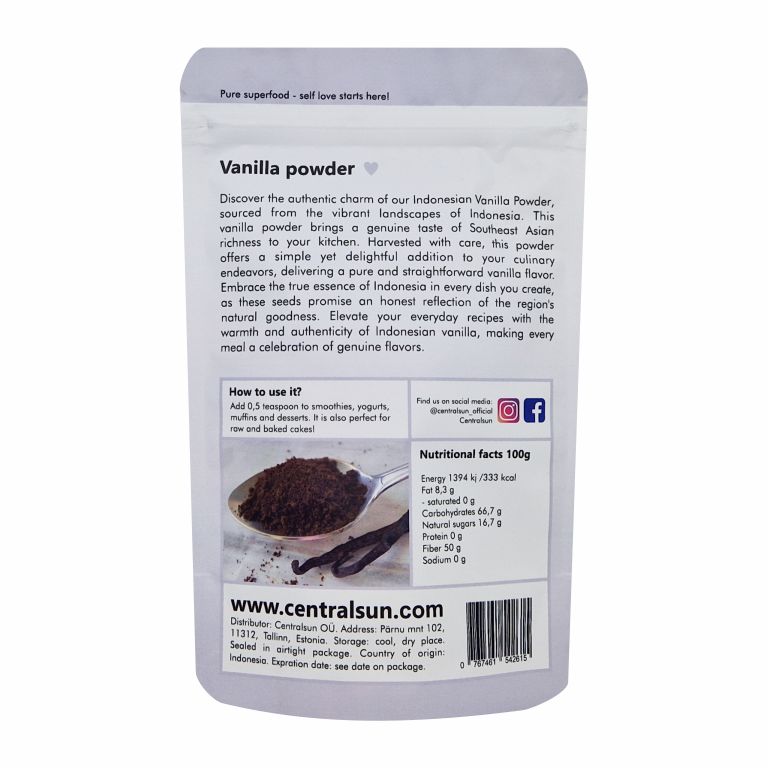 Centralsun vanilla powder brings a rich aroma and subtle taste to your kitchen. When preparing baked goods or desserts, this powder offers you a truly authentic vanilla taste experience.