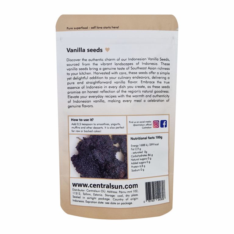 Vanilla seeds are aromatic and tasty little seeds that come from the inside of the vanilla pod. These pods come from Indonesia, where one of the highest quality vanilla varieties in the world grows. Vanilla seeds are an invaluable treasure of the culinary world, adding a unique taste and elegance to food. Using these tiny seeds in cooking opens the doors to endless creativity and flavor experiences.