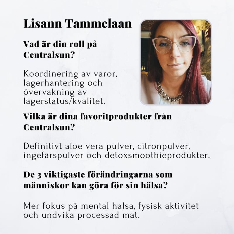 Centralsun grundades i Estland år 2020 när makarna Tarmo och Maria bestämde sig för att skapa sitt eget varumärke med hälsoprodukter som de själva använder och älskar. Efter att ha levt hälsosamt i många år ville de inspirera andra att göra mer medvetna val. Allt började med en enda produkt – frystorkat drakfruktspulver. Snart lades fler spännande och högkvalitativa produkter till i sortimentet och vann snabbt människors hjärtan i Estland. Idag har Centralsun kunder över hela världen, och intresset för hälsoprodukter fortsätter att växa. År 2021 anslöt sig även Tarmos dotter Lisann till företaget.